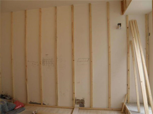 向地面鋪地板打地龍一樣,墻上打上木龍骨,然后再用文釘固定地板。