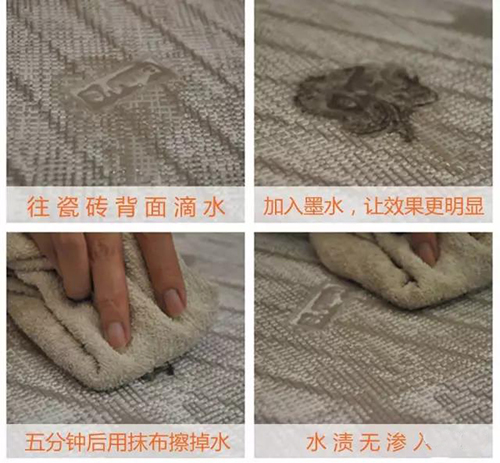 可以通過在瓷磚背面(也就是磚坯)滴墨水的方法來判斷。這個過關說明廠家的機壓噸位、燒結溫度方面合格。