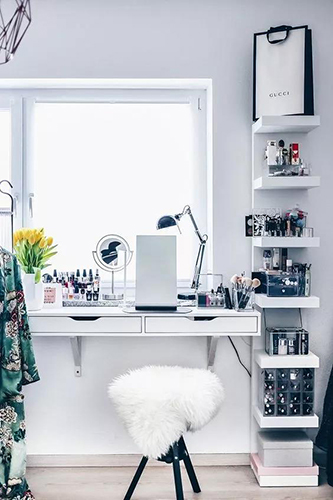 利用附近色:和踢腳線相交的無非就是墻面還有地面。那我們就都加以利用。比如下面這個(gè)就是用了與墻面色保持一致的方法。