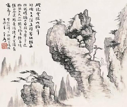 對了,這里跟大家解釋一下新中式,不是家里面用了紅木家具就是中式,我們看一下張大千先生的這張山水畫。