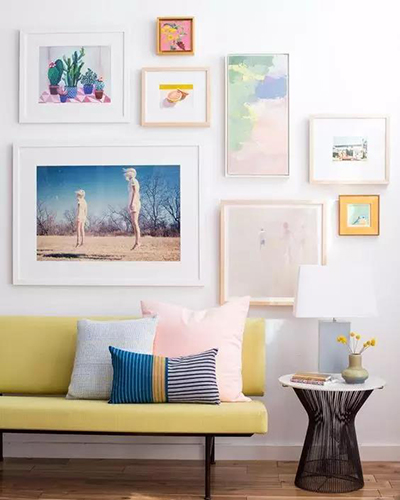所以可以根據(jù)這些畫的配色,來選擇自己軟裝的顏色,從乳膠漆、地板,到家具。
