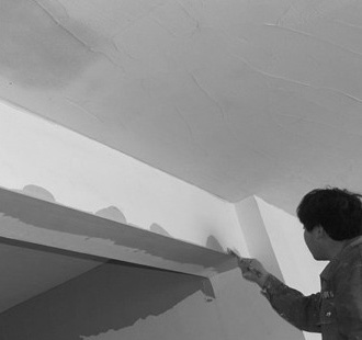 1.對室內陰陽角進行彈線和吊線、拉線檢測,并用石膏進行修補拉直;