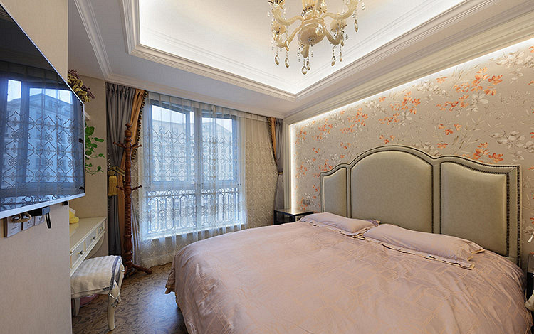 案例簡(jiǎn)介:簡(jiǎn)歐風(fēng)格相對(duì)于別的風(fēng)格而言更加大氣,要求戶型大,層高在2.8米以上做出來的效果更好,首先我們把設(shè)計(jì)拆分成很多個(gè)模塊,頂面裝飾用了疊級(jí)吊頂,裝飾起來房子更有層次感,但是也不是特別復(fù)雜,墻面裝飾主要就是護(hù)墻板,和墻布,白色的護(hù)墻板,優(yōu)雅,大氣,藍(lán)色的碎花墻布完全體現(xiàn)了歐式的古典和優(yōu)美,在家具的選擇上,摒棄了過于復(fù)雜的雕花,保留了古典的曲線和和曲面,再加上色彩的使用,使整體看起來明亮大氣,整個(gè)空間給人以開放,寬容的非凡氣度