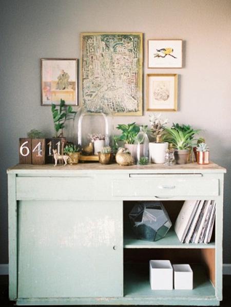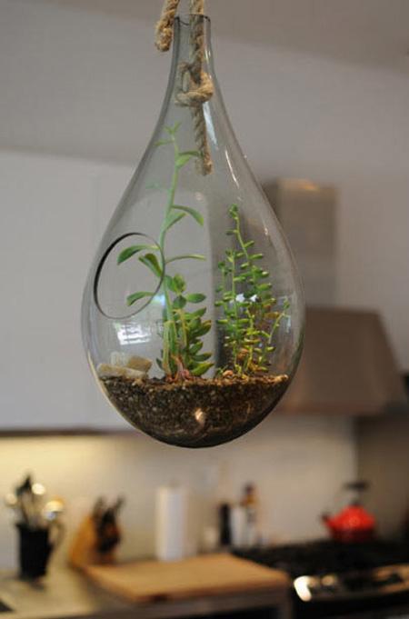 編輯點評:屋主將這些肉質植物種植在這個懸掛在廚房上空的玻璃容器中,當然,如果它是熒光的,就省電了。