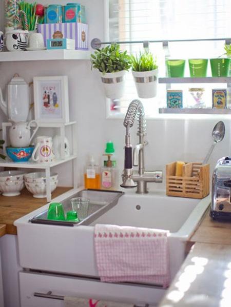 編輯點評:廚房水槽上面窗口的位置長出了兩盆草,它們的出現也許是因為這里良好的采光吧。